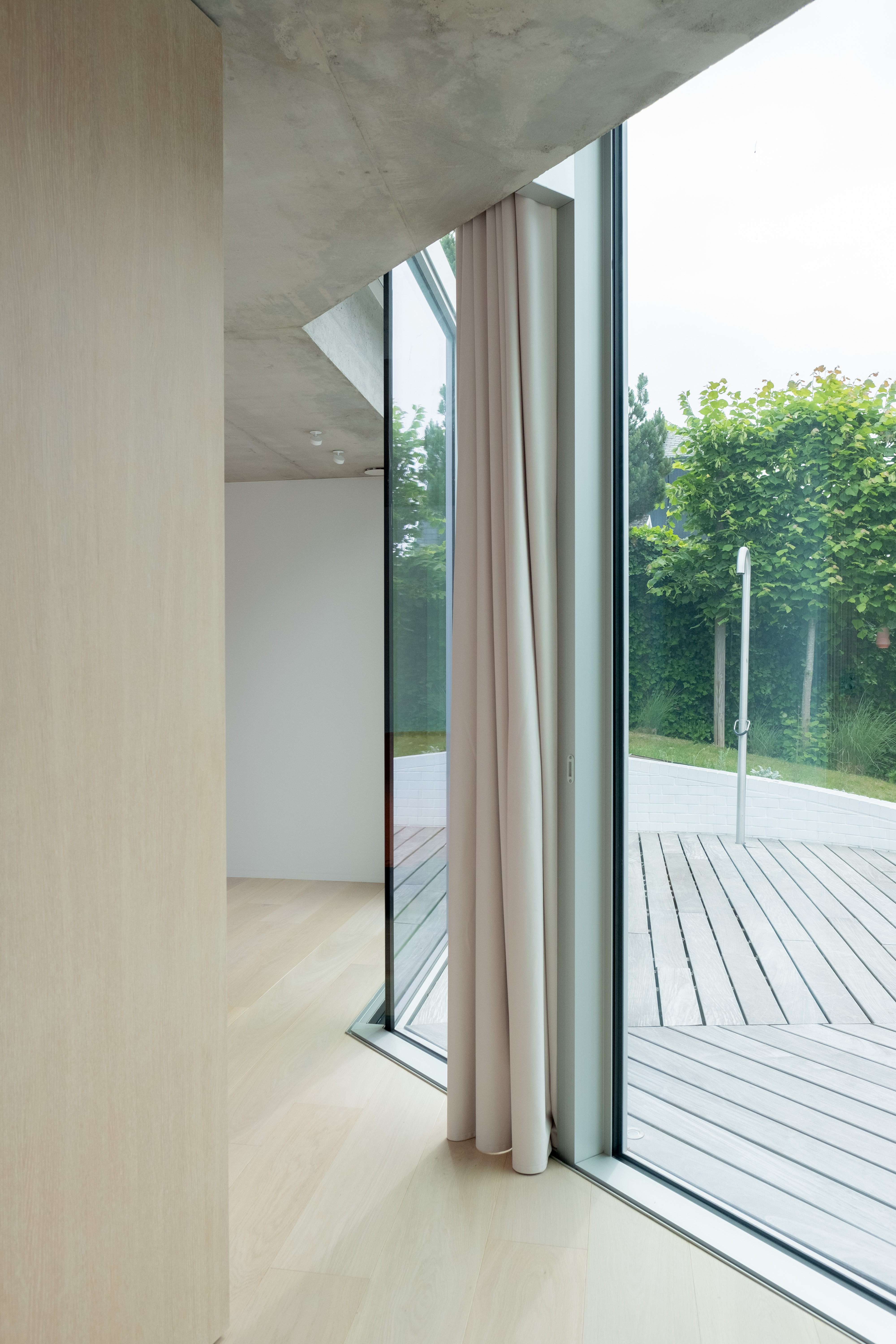 Située en hauteur, au-dessus de la citadelle de Namur, une remarquable maison construite en 1986 s’accompagne d’une extension à la fois discrète et ouverte sur le paysage. Le projet épouse la pente du terrain, jouant avec le vocabulaire architectural de la maison existante tout en le respectant. L’approche holistique du projet coordonne dans le détail rideaux, butées de porte, éclairages, etc. Transversalité et fluidité organisent les espaces de la chambre, de la salle de douche, du bureau et du poolhouse.