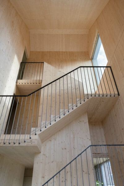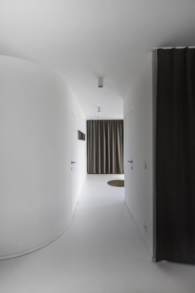 Implantée sur une parcelle boisée, cette maison se faufile entre les grands chênes du site, créant un pavillon ancré dans un parc habité où la nature est mise à l’honneur. Le plan allongé de la maison lui offre une circulation naturelle en enfilade générant une transition progressive des espaces partagés vers les espaces privés.